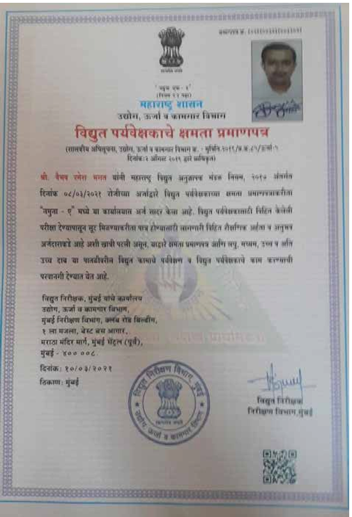 Electrical Supervisor Certificate