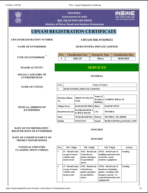 Udyam Registration Certificate